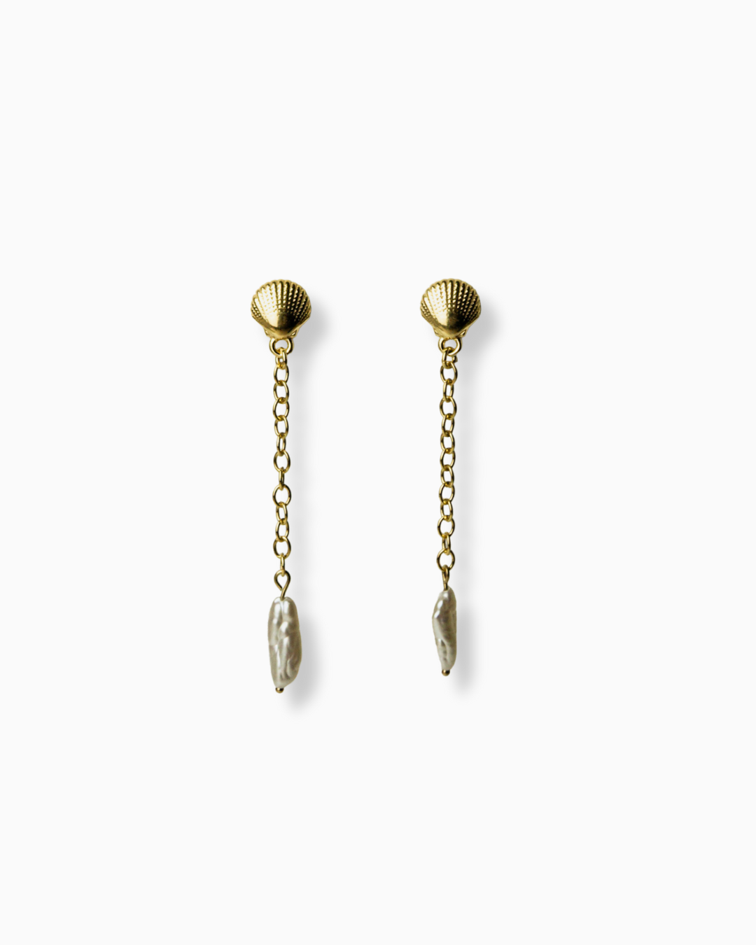 Diese filigran geformten Stecker zeichnen eine zarte Muschelform am Ohrläppchen, von der sich feine Kettenglieder wie Sonnenstrahlen ins Leere ziehen. Am Ende: eine frei schwingende, schimmernde Keshi-Perle – jedes Exemplar ein Naturwunder. Wähle zwischen recyceltem Sterling Silber oder edlem 24k vergoldetem Silber – nachhaltig, hochwertig und stilvoll.